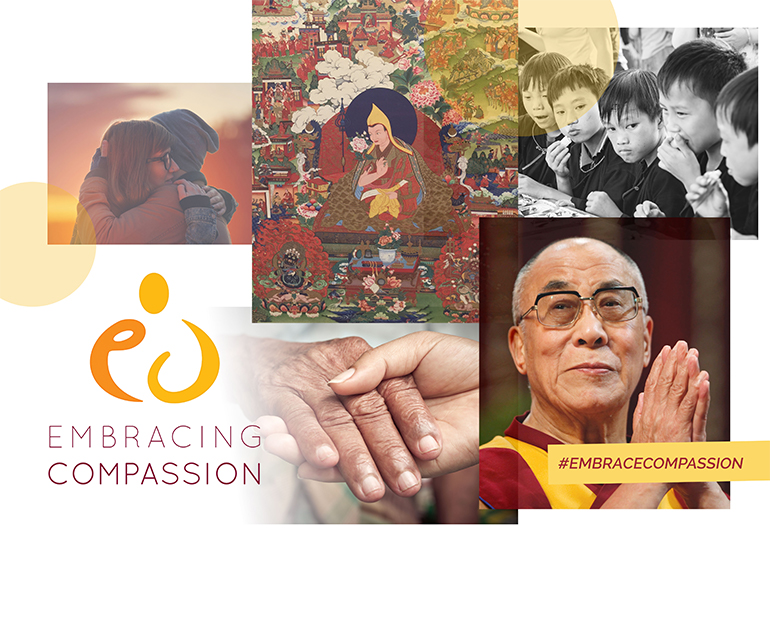 According to Embracing Compassion, no such work of this scope on the Dalai Lama lineage existed, and Temba Chophel was excited at the idea of creating a great traditional work as was executed in the past. In response, His Holiness commissioned the work, which was completed in the summer of 2015.The thangkas, which depict a central figure surrounded by the events in the life of each Dalai Lama, capture the historical and spiritual events that marked each one’s life. They begin with incarnations that preceded the recognition of the Dalai Lamas, which include Tibet’s first kings, then each Dalai Lama.