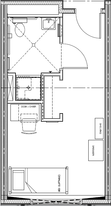 **Single Rooms are prioritized for medical or other special accommodations through the Disability Resources Office (DRO). There are very limited single rooms (shared or private bath) within the buildings. Most of the beds available are in a double room suite with a shared bathroom.
